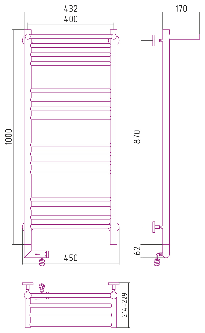 Внешние габариты (высота х ширина х глубина)(мм) : 1062x450x214-229