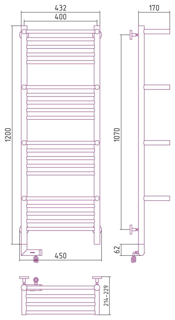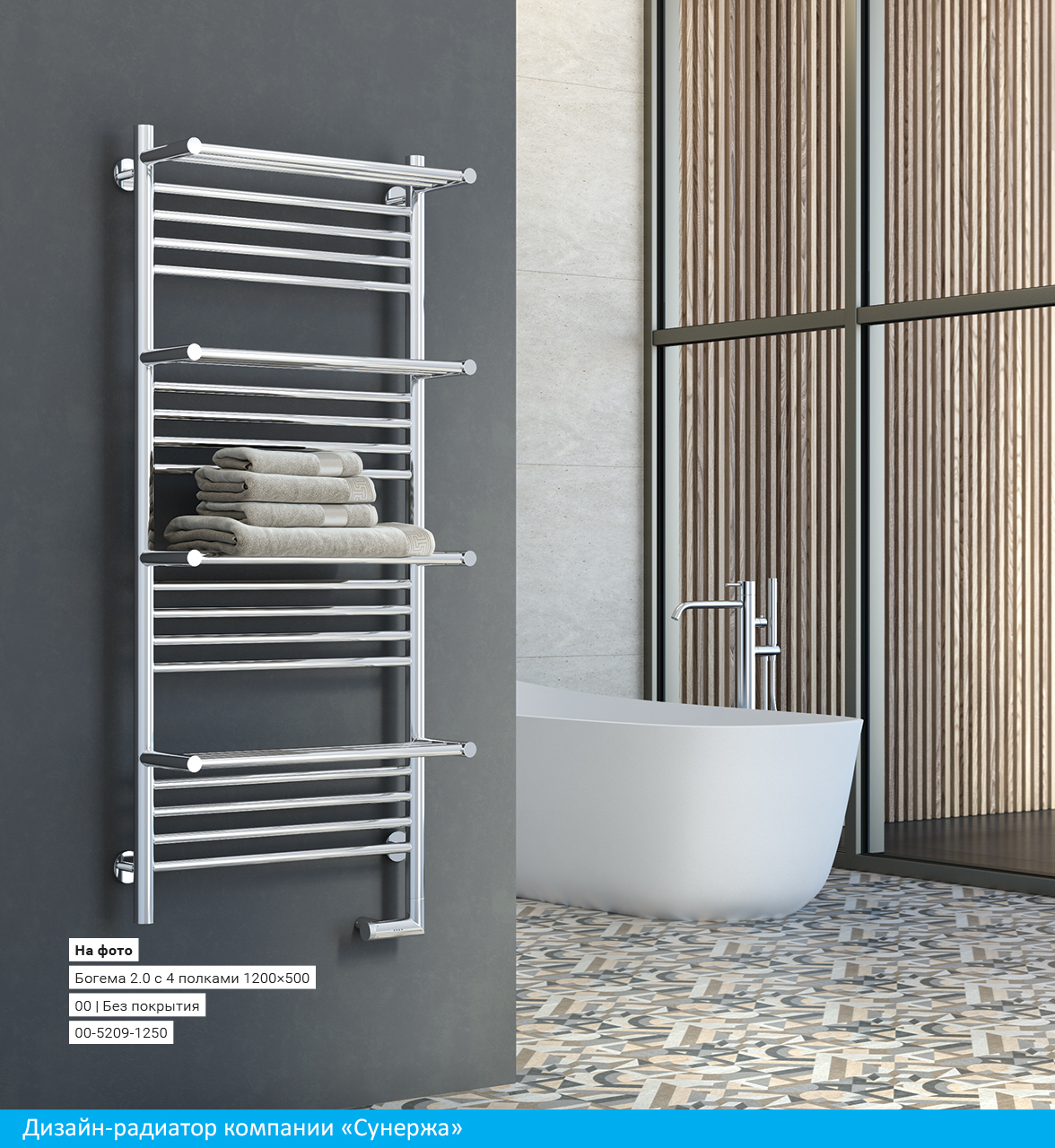 Полотенцесушитель электрический Сунержа Богема +4 полки 2.0 1200x400