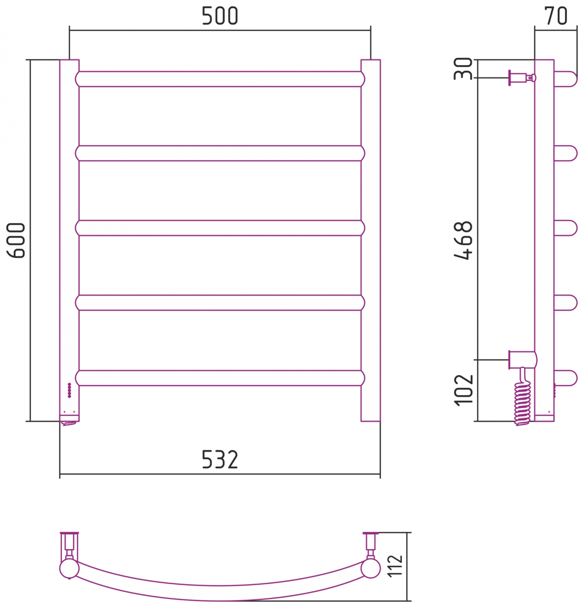 Полотенцесушитель электрический Сунержа Галант 4.0 600x500