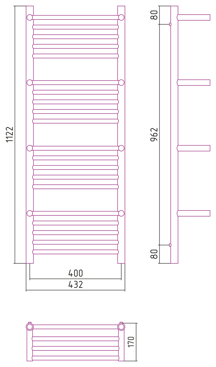Размер полотенцесушителя:1200x400