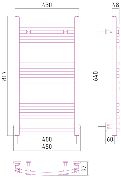 Полотенцесушитель водяной Сунержа Аркус 800x400