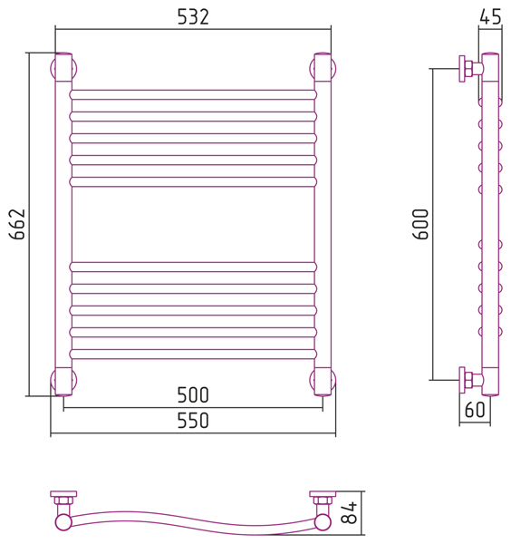 Полотенцесушитель водяной Сунержа Флюид+ 600x500