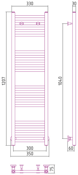 Внешние габариты (высота х ширина х глубина) (мм) : 1207 х 350 х 75