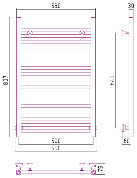 Полотенцесушитель водяной Сунержа Модус 800x500