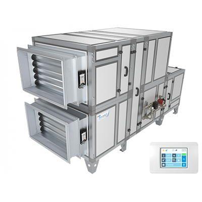 - В комплекте с воздушными клапанами и электроприводом, возвратной пружиной, системой цифровой автоматики JetLogic с цветным сенсорным пультом управления и всеми необходимыми датчиками.