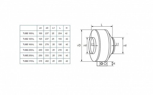 Вентилятор TUBE 100 XL применяется для перемещения воздуха в круглых каналах систем приточной и вытяжной вентиляции жилых, общественных и производственных помещений.